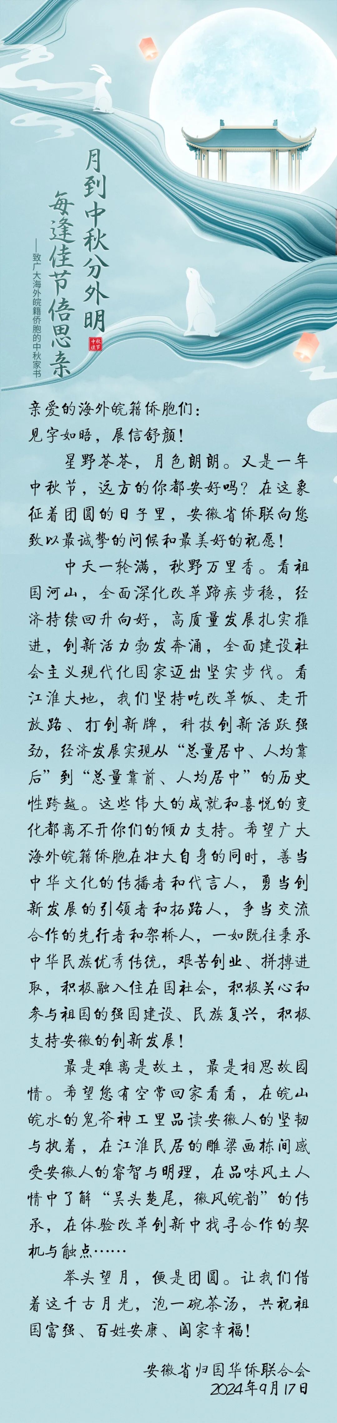 月到中秋分外明 每逢佳节倍思亲——安徽省侨联中秋家书