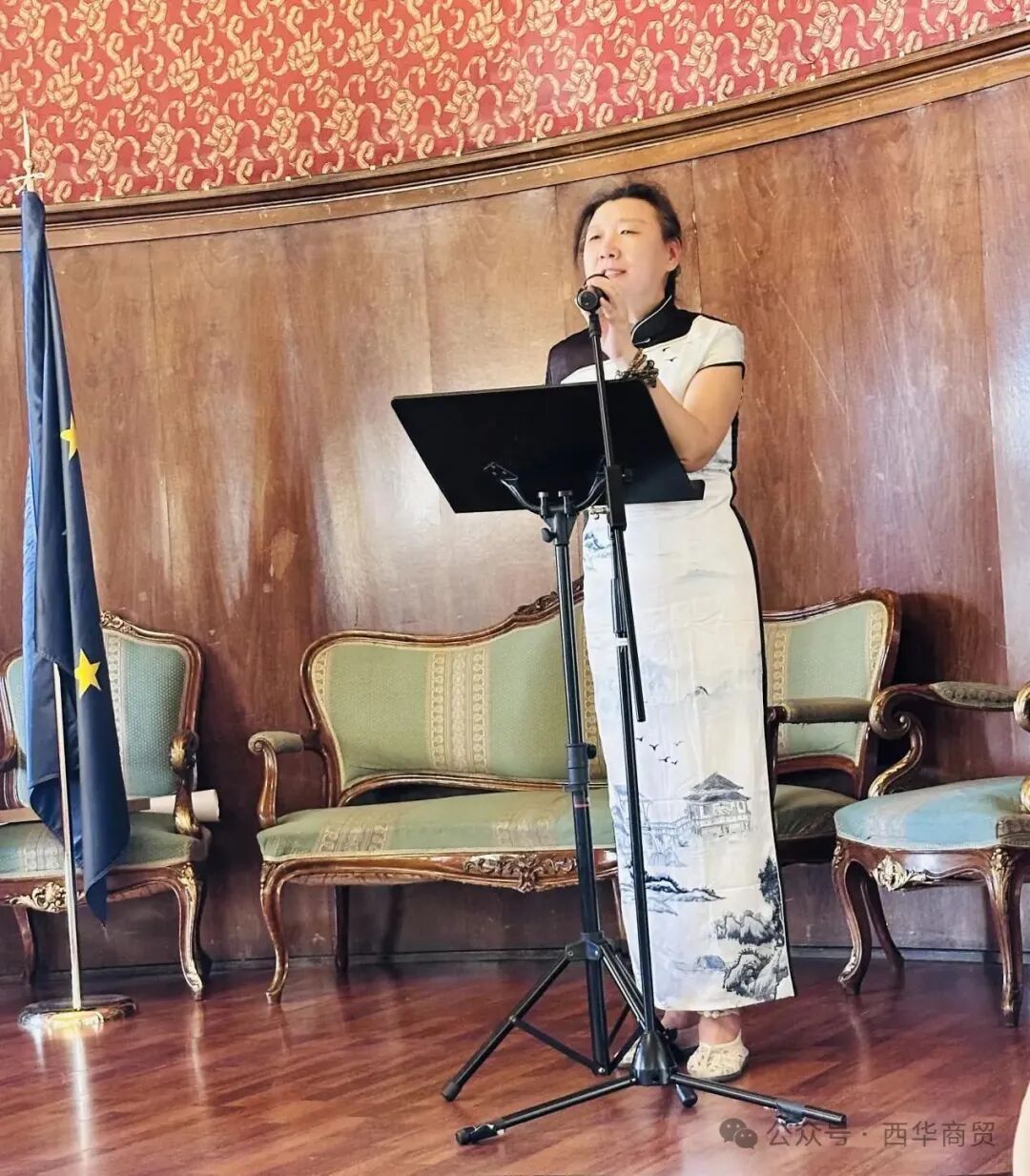 ⽡伦⻄亚⼤区商务、⼿工艺和消费部部⻓ Maribel Sáez Martínez发表讲话,她高度评价了此次活动的文化价值和社会意义,并感谢商贸总会为丰富当地多元文化、增进中西相互了解所做的积极贡献。
