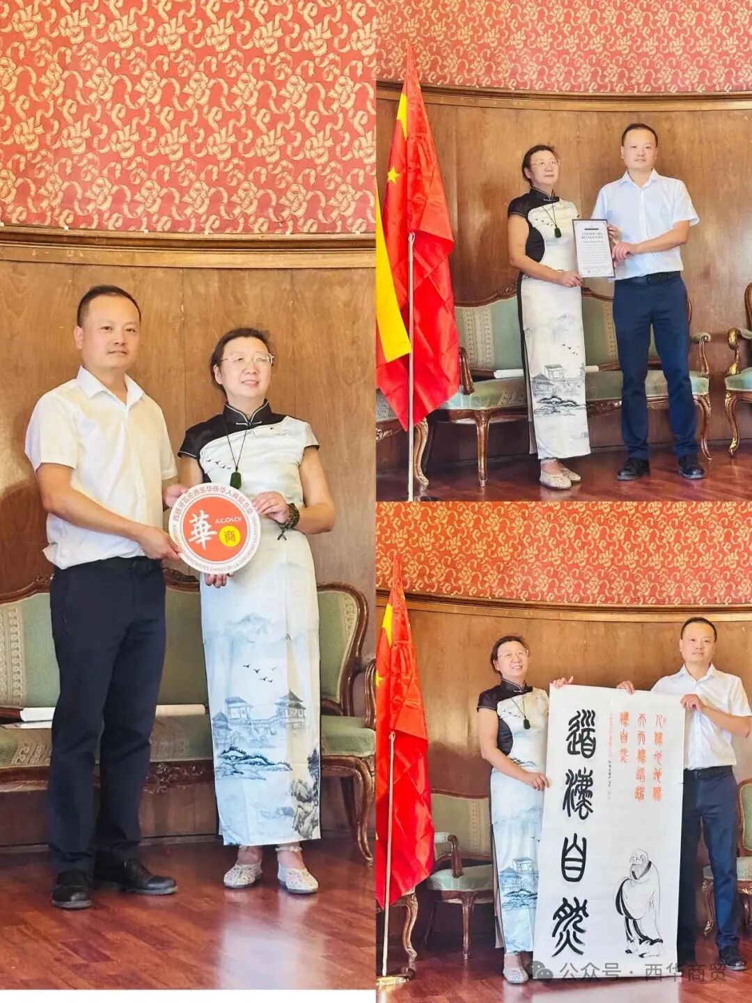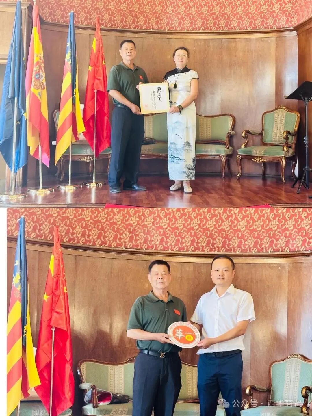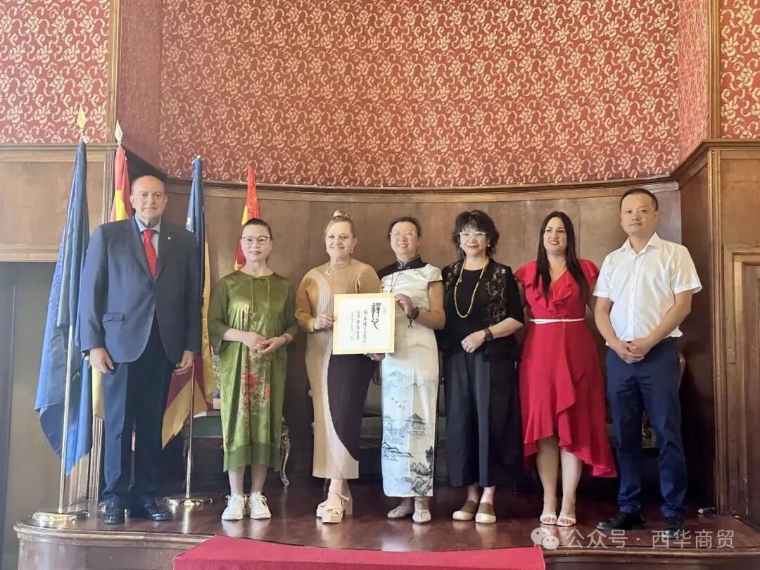 开幕式上还举行了隆重的艺术品互赠仪式。中方三位女艺术家向瓦伦西亚官员及议员、商贸总会等赠送了精心创作的书法、绘画、蜀锦作品等,作为中欧友谊和文化交流的珍贵见证。朱斌彬会长代表商贸总会也回赠了具有当地特色的纪念品,象征着双方友好情谊的延续。