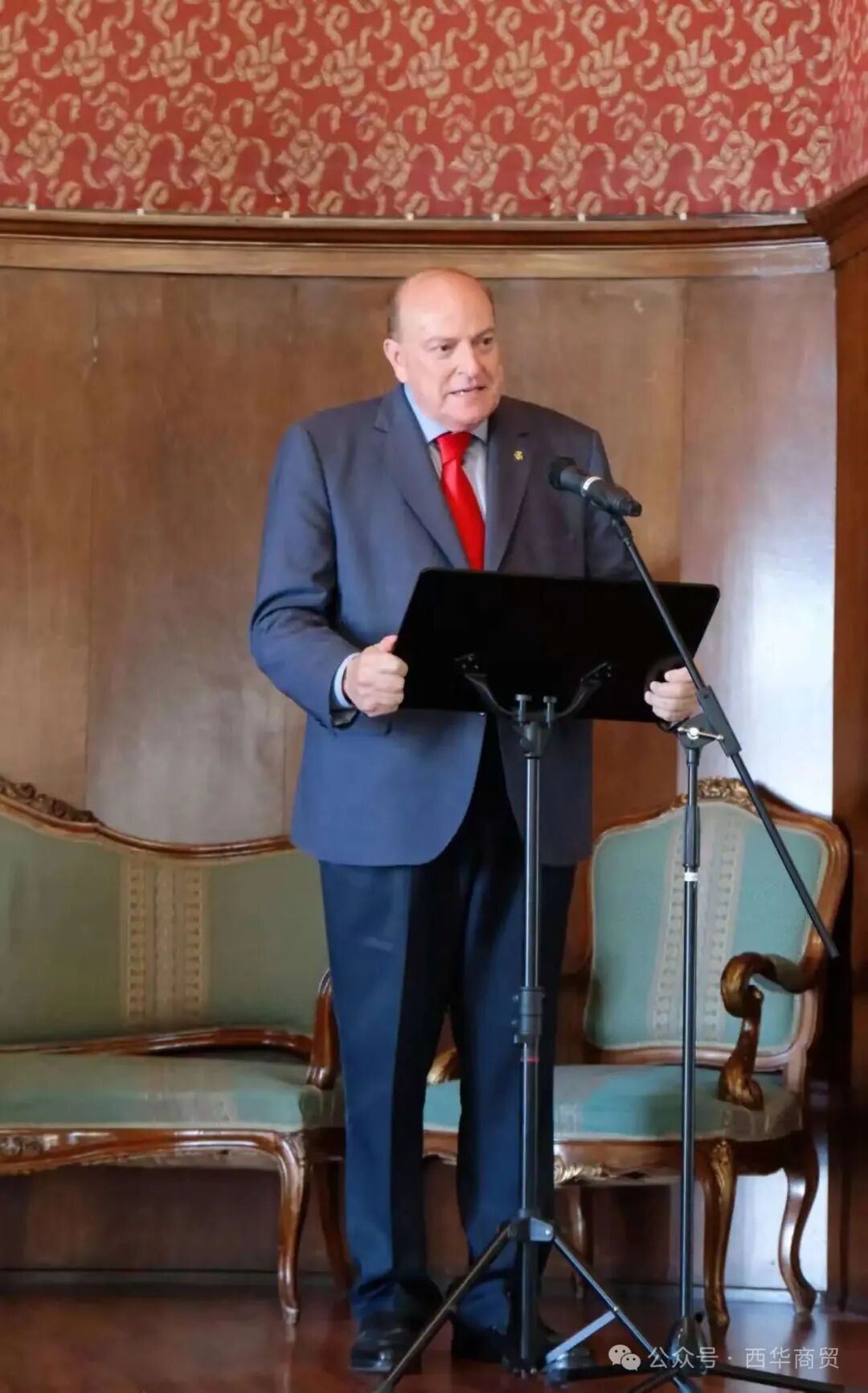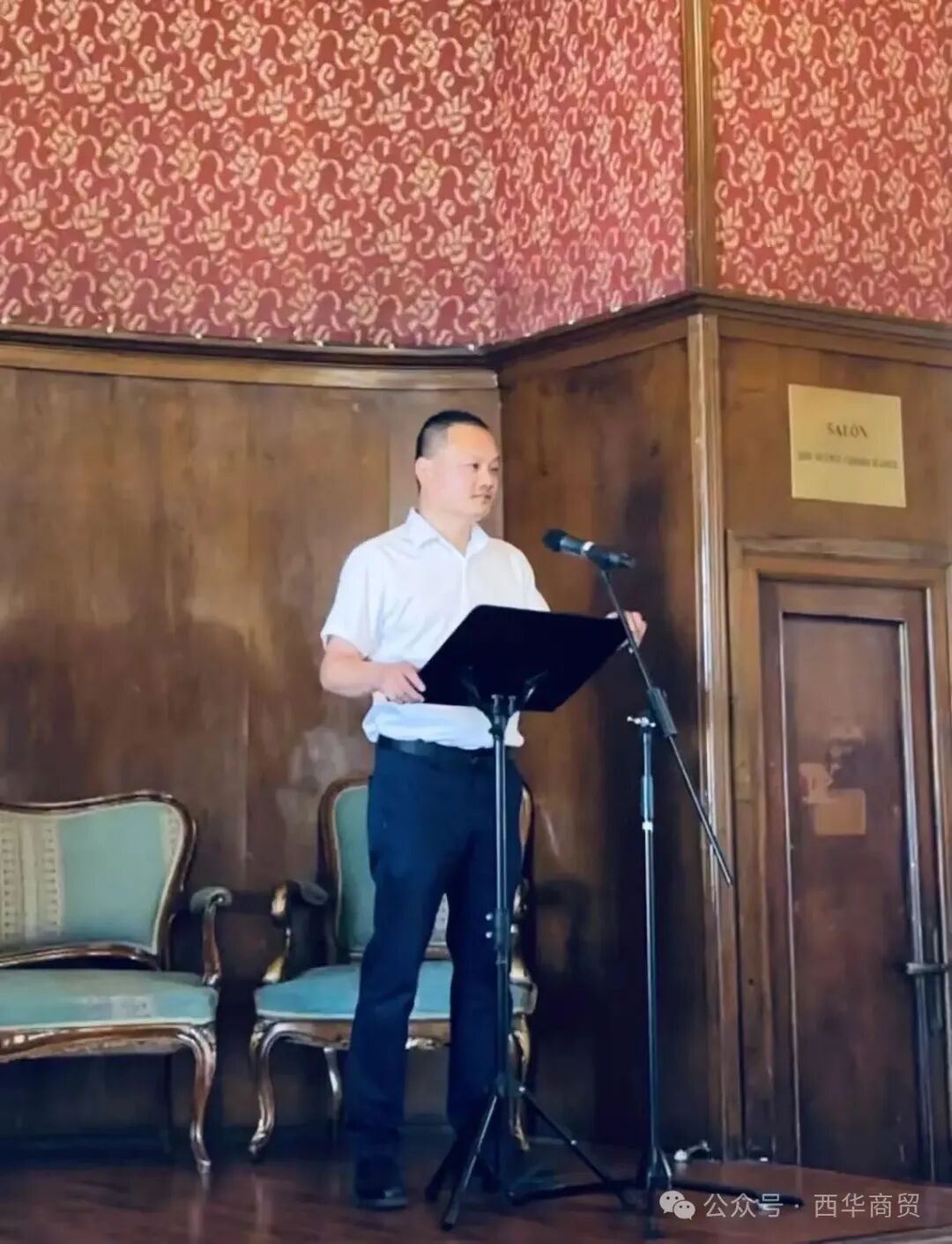 商贸总会会长朱斌彬用中西双语发表热情洋溢的致辞。他代表商会对各位嘉宾的到来表示诚挚欢迎,强调了商贸总会致力于推动中西经贸往来与文化互鉴的宗旨。朱斌彬表示:“值此中欧建交50周年,中西建立全面战略伙伴关系20周年之际,商贸总会举办此次艺术巡展意义非凡,希望通过艺术这一无国界的语言,加深西班牙民众对中国传统文化的理解和喜爱,进一步巩固两国人民的友谊。”