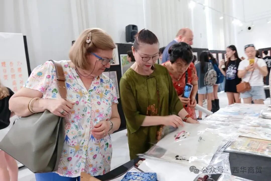 活动现场特设的艺术品展销区人头攒动,气氛热烈。三位艺术家带来的篆体书法、水墨绘画、蜀锦刺绣以其极高的艺术价值和独特的东方韵味,受到了到场嘉宾和观众的热烈追捧。许多艺术爱好者纷纷解囊,选购心仪的书画蜀锦作品,将这份来自东方的艺术之美带回家中珍藏。这不仅是对艺术家们才华的肯定,更是中国文化在海外深受喜爱的生动体现。