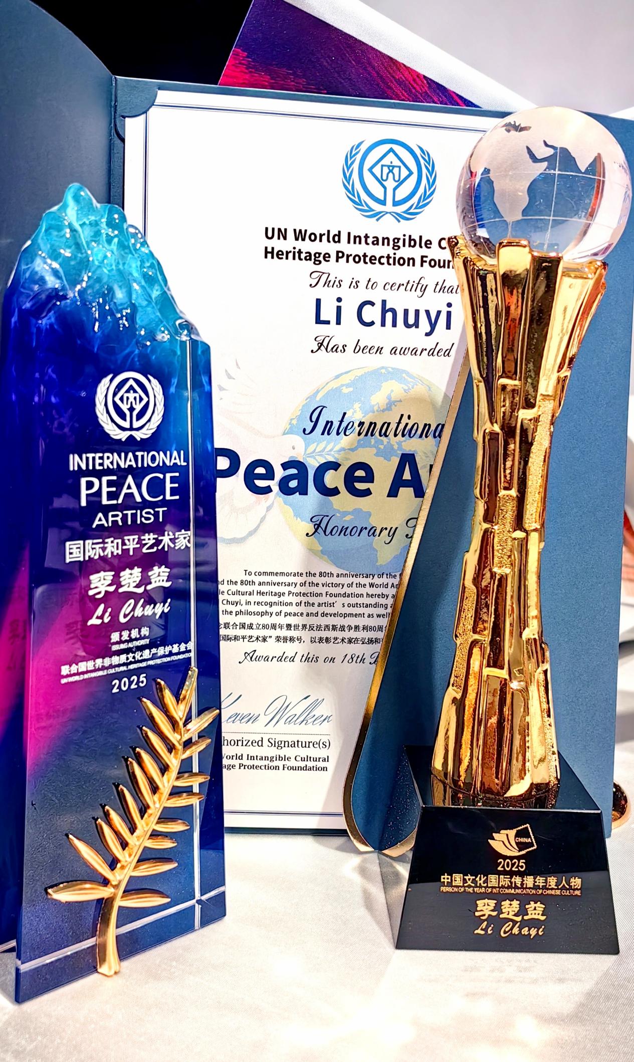 【江门市侨媒中心讯】1月18日,由联合国世界非物质文化遗产保护基金会、中国国际文化艺术交流发展中心主办的“文化中国·时代表达——第九届世界邮票上的中国文化年度盛典暨2025中国文化国际传播人物”颁奖盛典在北京摩卡艺术中心隆重举行。颁奖盛典上,新会在广州乡亲、中国摄影金像奖获得者,清华美院客座主讲教授、摄影艺术国际传播大使李楚益女士,凭借在摄影艺术领域的卓越造诣、文化传承的坚定坚守与国际传播的突出贡献,荣膺“国际和平艺术家”称号并获“2025中国文化国际传播人物”两项大奖。