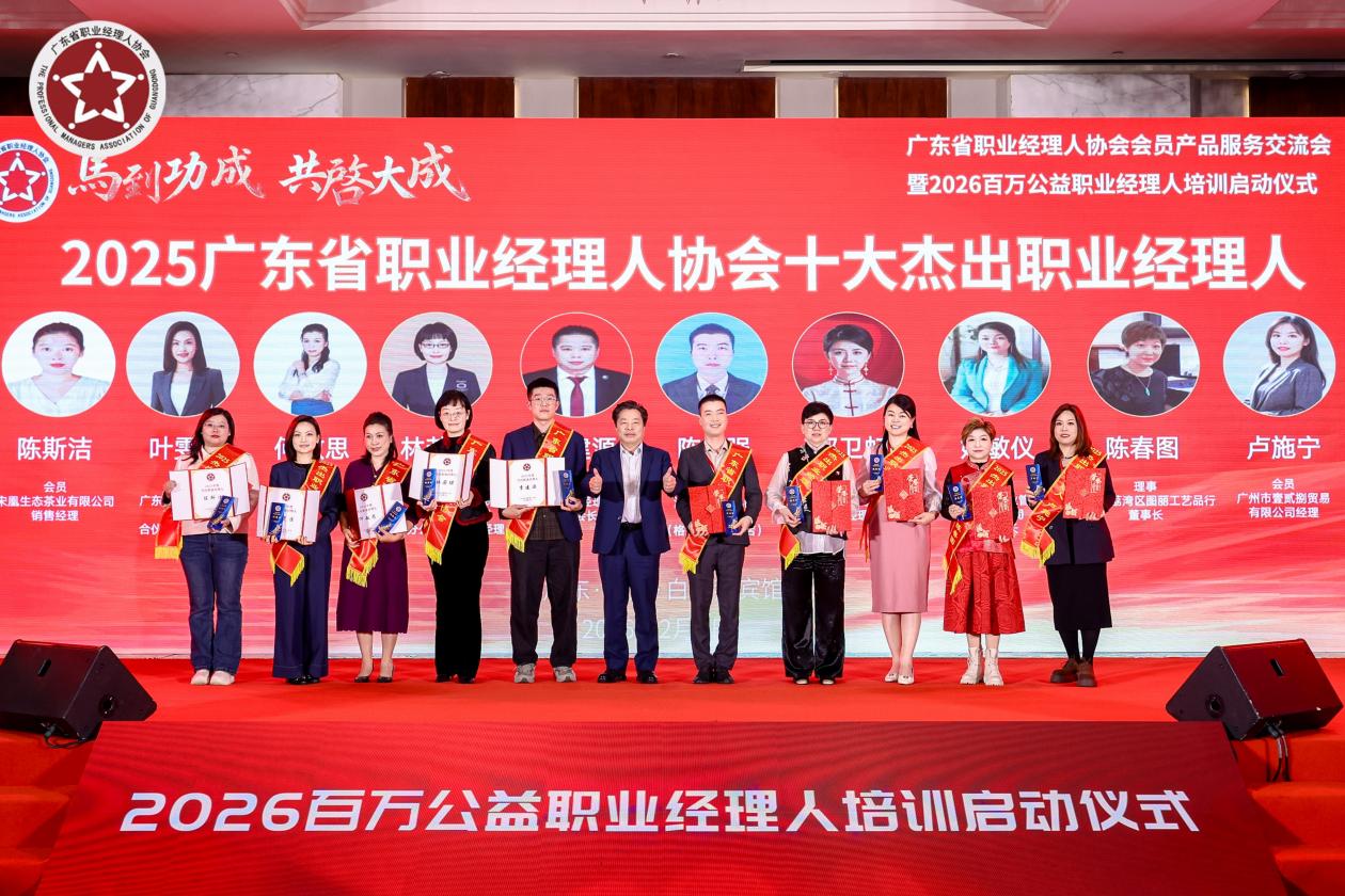 【侨乡新闻】报喜!江门市民营企业家陈福强荣获全省殊荣 图为陈福强(右5)荣获全省“十大”杰出职业经理人荣誉称号 (江门市侨媒中心讯)2月6日晚,广东省职业经理人协会在白天鹅宾馆举办“马到功成,共启大成”广东省职业经理人协会会员产品服务交流会暨2026百万公益职业经理人培训启动仪式。广东省工商联一级巡视员、省非公党委副书记张宏斌出席活动并讲话。省职业经理人协会会长谢小夏、各界嘉宾、专家学者、企业代