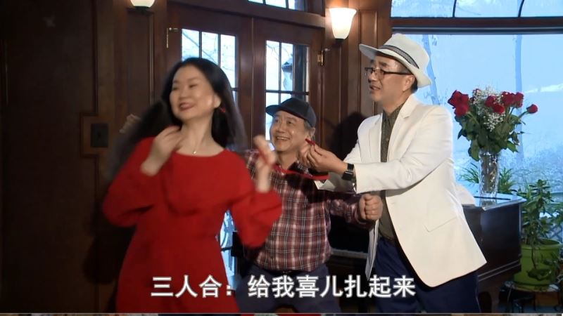 在热闹喜庆的秧歌《闹新春》的欢快舞步和旋律中,春晚上半场开始了。东北同乡会的黑土地艺术团以浓烈的热情表达着对生活的热爱。国内著名相声演员张大礼、陈寒柏给华府华人华侨拜了年,带来了他们的贺岁相声。