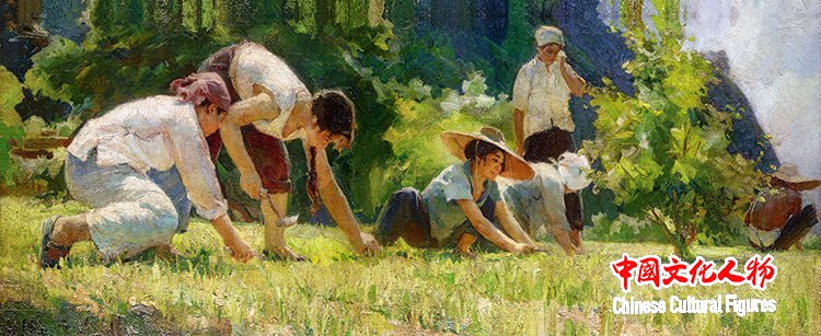 《间苗》 画布油画 50cm×149.2cm 1963年 张文新作品