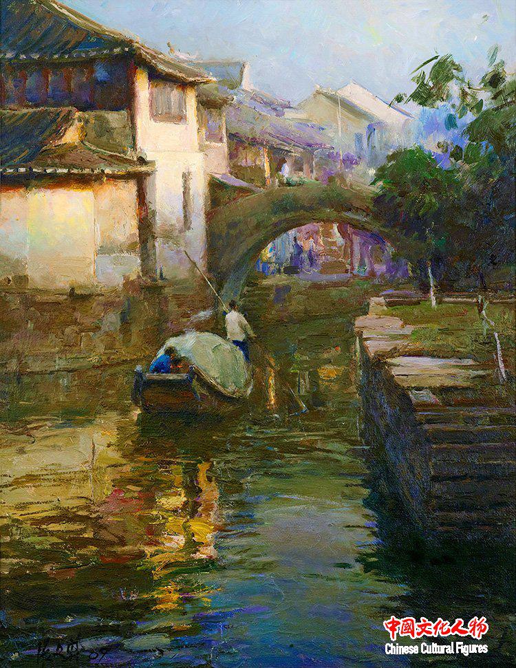 《周庄的早晨》画布油画 61cm×46cm 2009年 张文新作品
