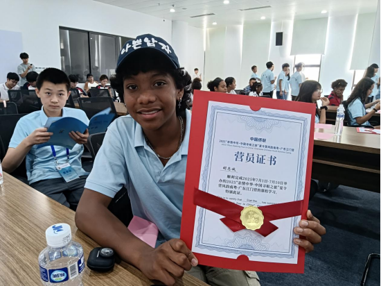 据了解,由中国侨联主办,广东省侨联、五邑大学、江门市侨联承办的2025“亲情中华·中国寻根之旅”夏令营(风韵南粤广东江门营)的50名海外华裔青少年来自美国、多米尼加、法属圣马丁等地,且大部分营员祖籍台山、恩平,期盼已久跨越山海回到中国侨都江门完成一趟“中国寻根之旅”。在行走侨乡土地、寻找祖辈足迹的旅途中,侨乡江门的历史文化与发展新貌给海外华裔青少年们留下了深刻印象。夏令营领队、美国西雅图至孝笃亲公所陈春仪老师,来自圣马丁营员莫锦兰同学、美国营员Anson同学等纷纷登台发表“寻根感言”:在五邑大学,华裔青少年学习了汉语文化、中文歌曲与古诗词;在华侨博物馆,了解华侨先辈们漂洋过海、拼搏奋斗的历史;在新会学宫,体会了孔子“万世师表”的精神;在鹤山,学习了咏春拳与非遗狮艺; 亲手制作新会非遗葵艺、台山艾糍、开平镇濠泥鸡与东艺宫灯;华裔青少年还与江门市景贤中学的学生们合唱、篮球交流互动;在梁启超故居深情朗诵《中国少年说》……点点滴滴都是充满温馨与血脉深情,每一次参营体验都铭刻心间。