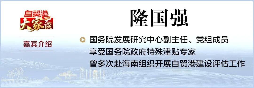 隆国强:根据《海南自由贸易港建设总体方案》,国务院发展研究中心负责对海南自贸港的建设的全过程进行评估。5年多来呢,我个人有幸参加了这个工作,多次到海南,所以有很深刻的印象。这5年多来,海南自贸港建设取得了良好的进展,已经进入成型起势、即将全岛封关运作的新阶段。