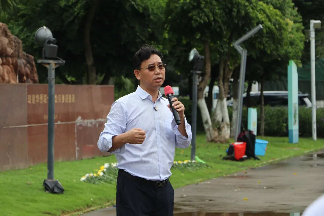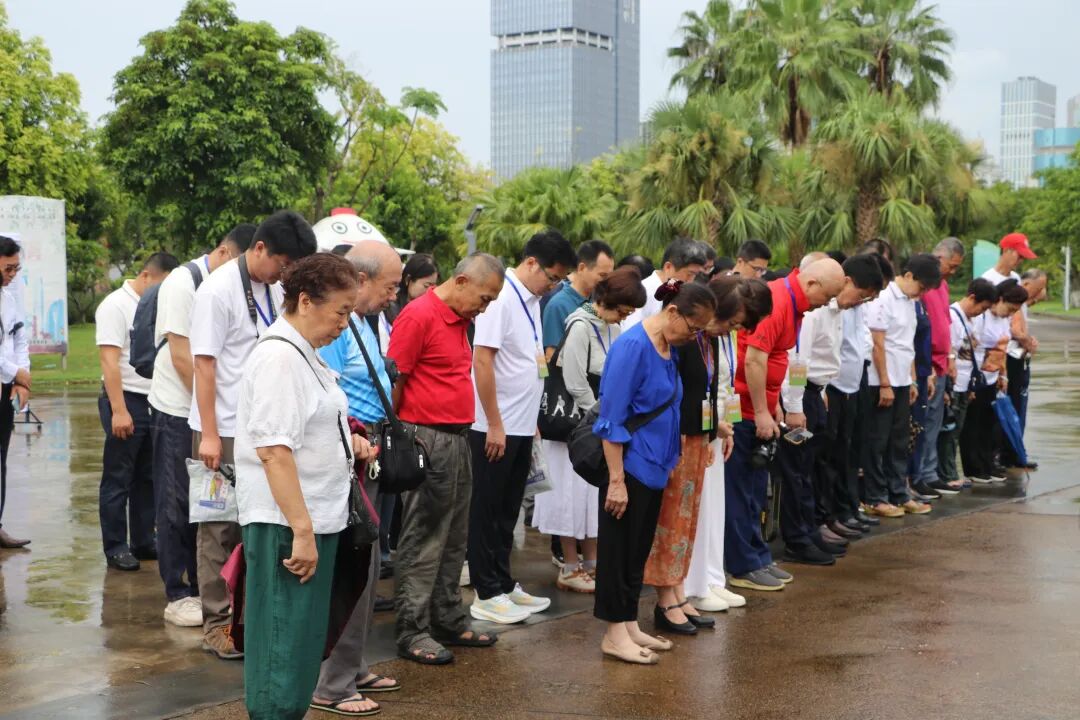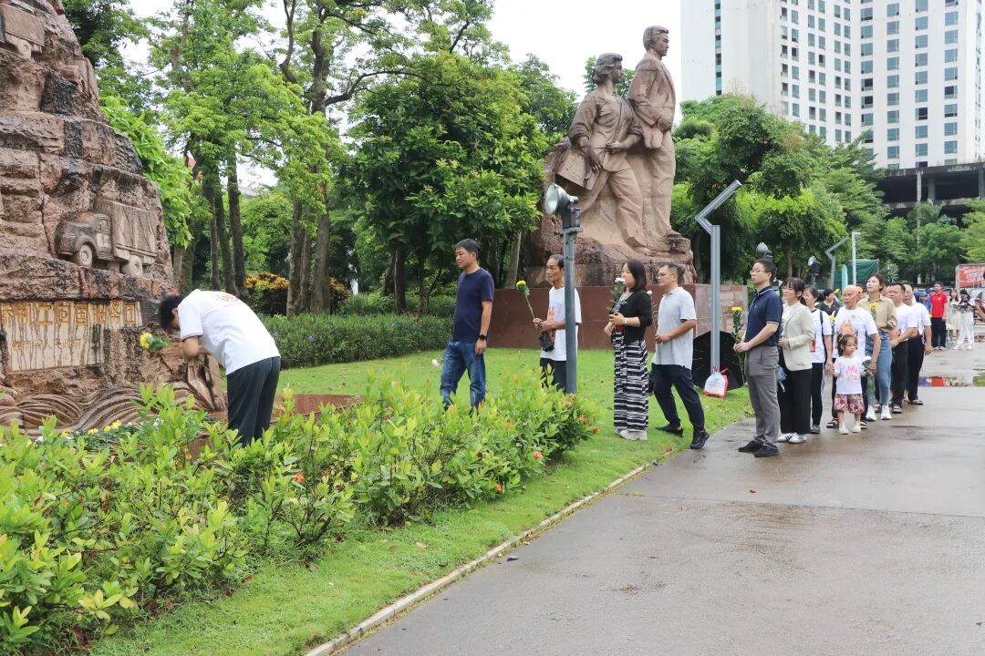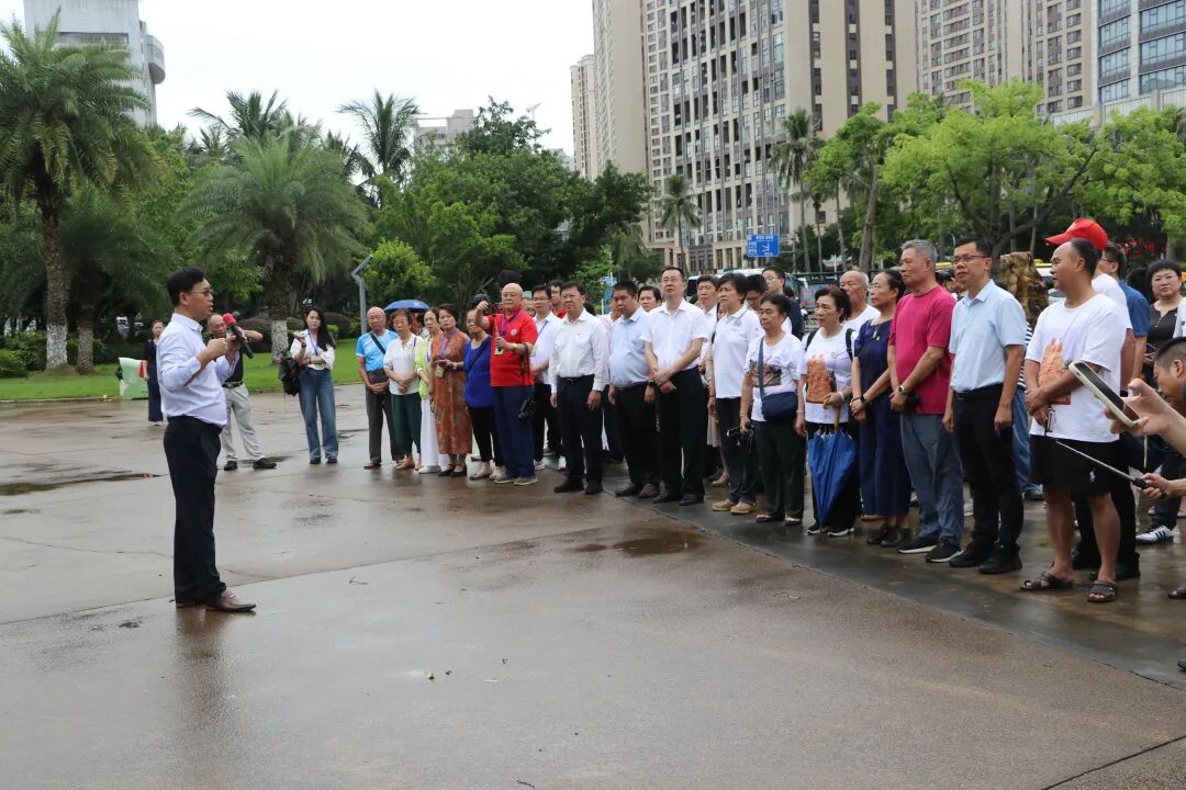 参与活动人员向雕像默哀并献花。雕像作者、省美术家协会副主席、省雕塑艺术学会会长、国家一级美术师陈学博为大家讲述了南侨机工和琼侨响应祖国召唤、同仇敌忾、毁家纾难、毅然归国、浴血奋战的感人事迹,生动还原了那段波澜壮阔的历史画卷,深刻阐释了南侨机工和琼侨的精神内涵。