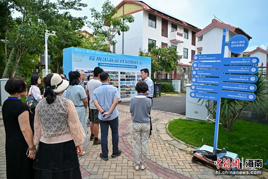 图为华文媒体代表在欧美同学会海归小镇,参观陵水小游戏创作者基地。骆云飞摄