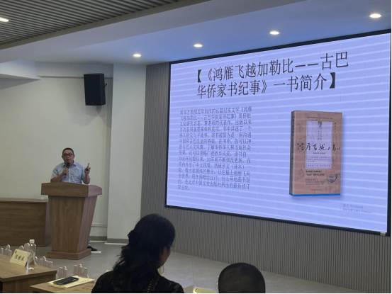 2025年9月19日,江门市政协2025年第六期“书香政协·悦读五邑”读书活动在五邑大学鹤山楼举行,江门市政协委员代表、相关专家学者等60多人参加。本次读书活动的主题是“跨越时空、筑梦侨乡”,活动主办单位是江门市政协港澳台侨和外事委;协办单位是五邑大学、江门市世青发展中心、江门市公共外交协会、江门市政协港澳台侨和外事委委员工作室等。江门市侨媒中心副理事长、主任黄柏军向读者推荐黄卓才教授纪实文学《鸿雁飞越加勒比——古巴华侨家书纪事》写作特色和时代意义