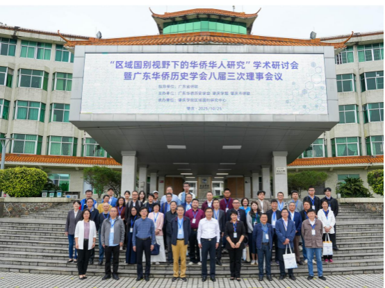 2025年10月24日至26日,由广东省侨联指导,广东华侨历史学会、肇庆学院与肇庆市侨联联合主办,肇庆学院区域国别研究中心承办的“区域国别视野下的华侨华人研究”学术研讨会暨广东华侨历史学会八届三次理事会议在肇庆顺利召开。肇庆学院党委书记谢冠华,广东省侨联党组成员、副主席钟日升,肇庆市侨联党组书记、主席陈彩霞,广东华侨历史学会会长、暨南大学华侨华人研究院研究员张应龙以及省内外多所高校、研究机构及侨联系统的专家学者、侨界代表、肇庆学院师生代表参加了开幕式。来自江门市侨联、江门市侨媒中心、江门市华侨历史学会、五邑大学等江门地区6名学者应邀出席学术研讨会。江门市侨媒中心副理事长黄柏军、陈福强等应邀出席会议。