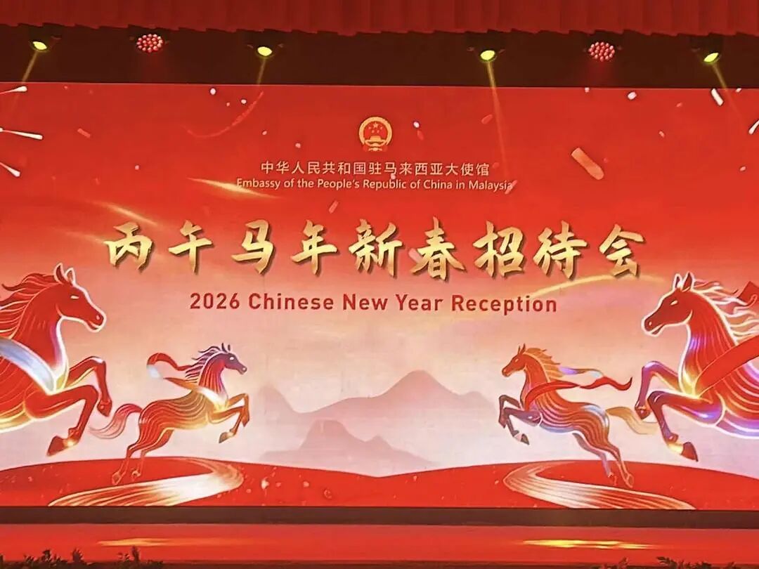 中华人民共和国驻马来西亚大使馆丙午马年新春招待会在欢快的舞蹈中开始,中华人民共和国驻马来西亚特命全权大使欧阳玉靖首先致辞,他说在春节即将到来之际,我们在马来西亚欢聚在一起过年,首先感谢马来西亚副总理兼能源及水务转型部部长是法迪拉·优素福阁下、马来西亚国会下议院议长佐哈里·阿卜杜勒·加尼阁下,马来西亚交通部长陆兆福阁下,马来西亚旅游、艺术和文化部部长张庆信阁下,马来西亚农业及粮食安全部副部长陈泓缣阁下,马来西亚外交部副秘书长罗兹安阁下在百忙之中莅临现场和我们一起度过这个愉快的时光,感谢马来西亚人民对中国人民的深情厚谊。