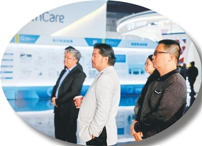 图为蒋阳(左二)参观博鳌乐城永不落幕国际创新药械展。受访者供图